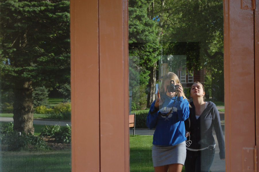 Finally, after an arduous trek across the vast expanse that is the Goshen College Campus, The Roommates reach the Door to the Union. From here, they need only descend the Secret Stairs to reach their destination.