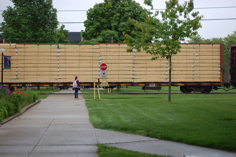 Do you slip under the train while it's stopped, clamber over it where two cars meet, or try to bike along the tracks until you find the end?