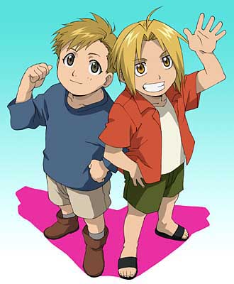But, large or small, Edward, his Brother, sticks by his side in all things (Edo's the lil' Runt with the blond hair--Note how he used to be Taller than Al!) |