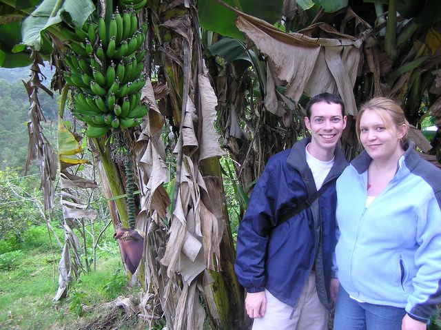 Mike and Heidi by a banana tree at Don Jose's organic farm