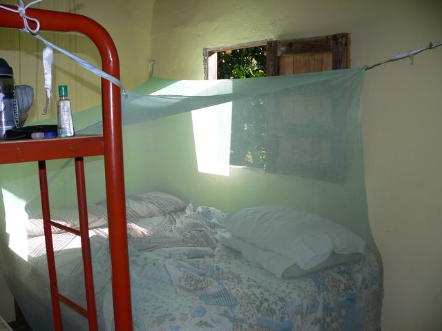 Our bed with mosquito net